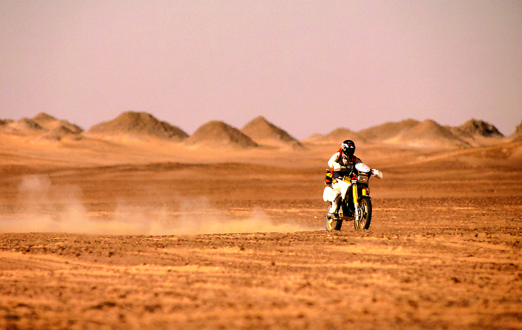 歌手・宇崎竜童氏、俳優・根津甚八氏とともにエジプト・ファラオラリー参戦。250ccクラスで優勝。