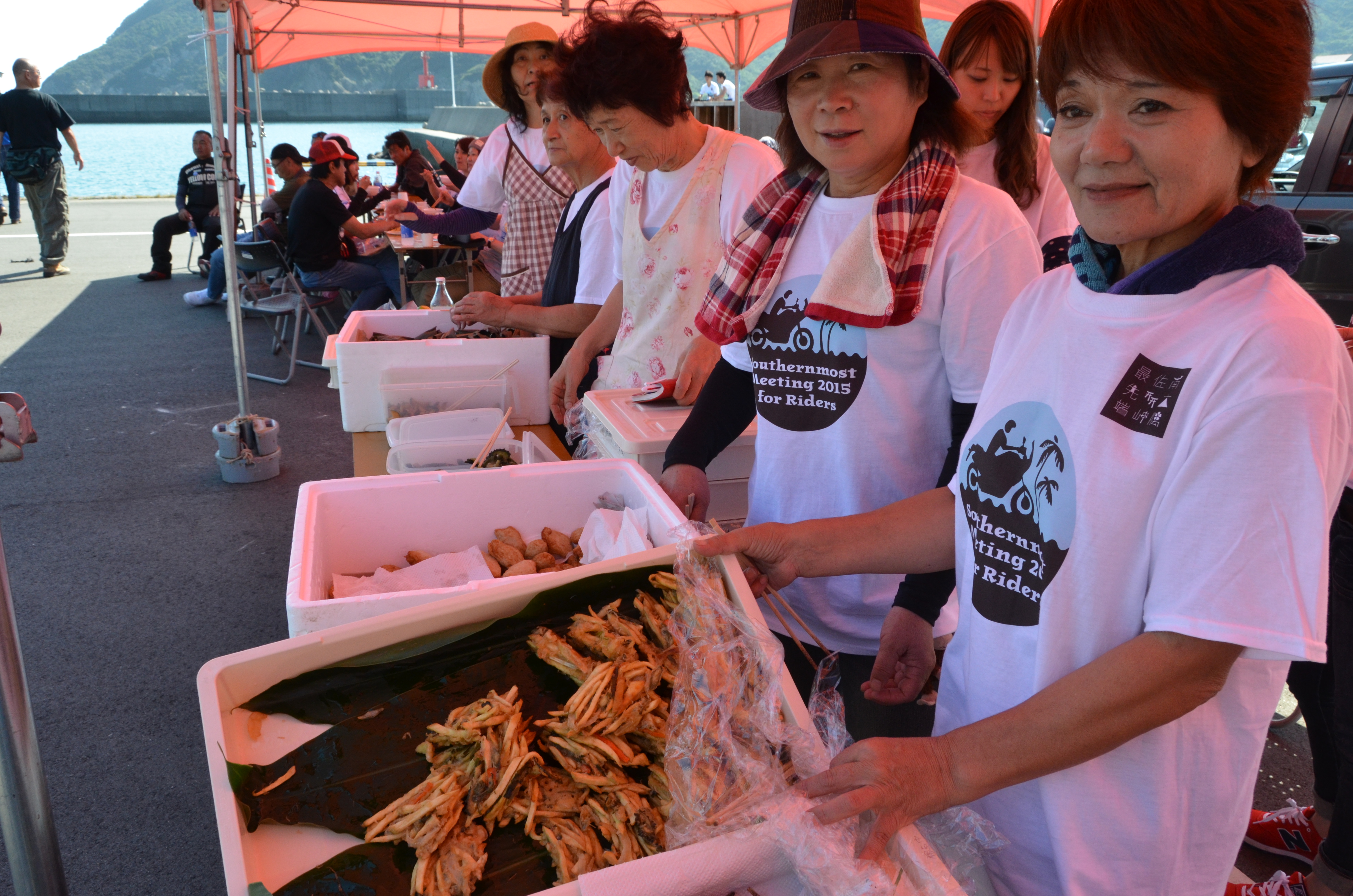 ゴールの受付をしたライダー達は「佐多岬到達証明書」を受け取り、地元婦人会からは郷土料理が振る舞われました。